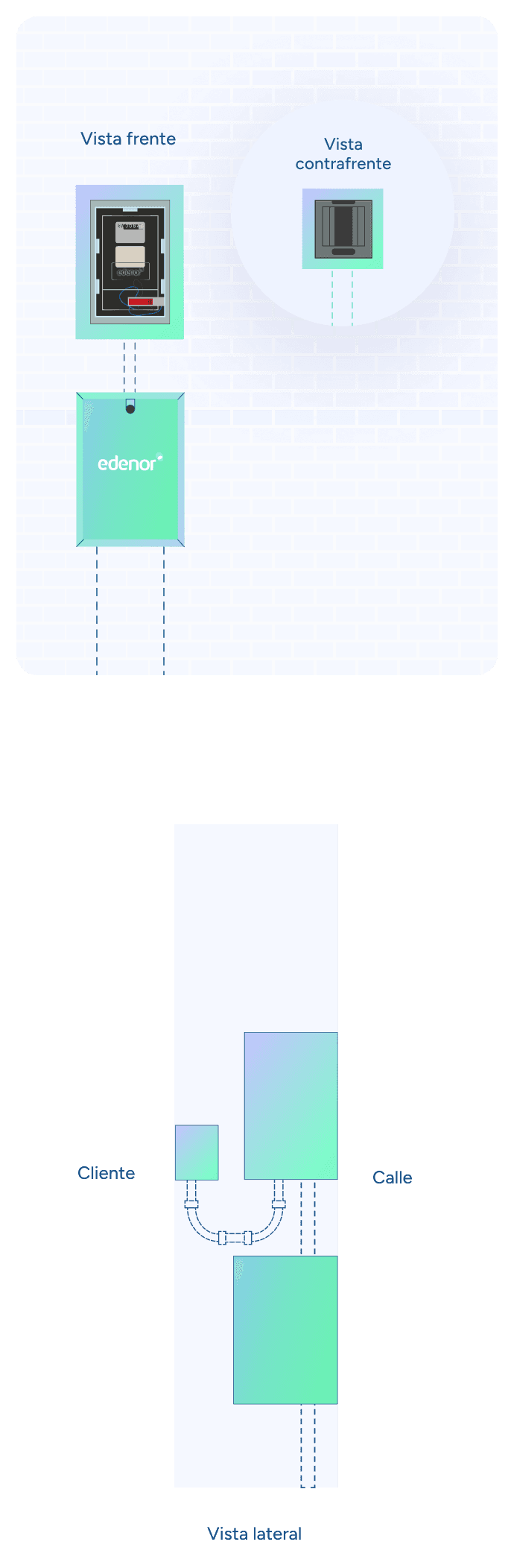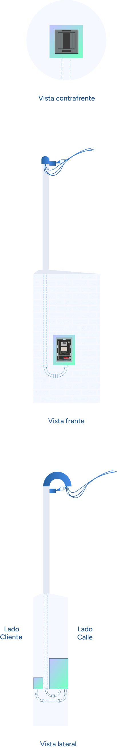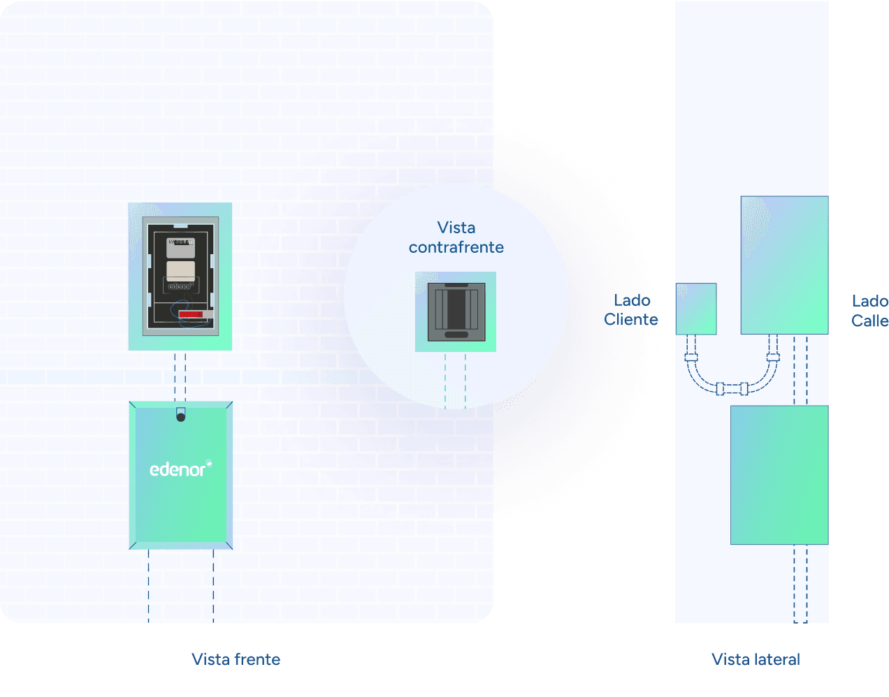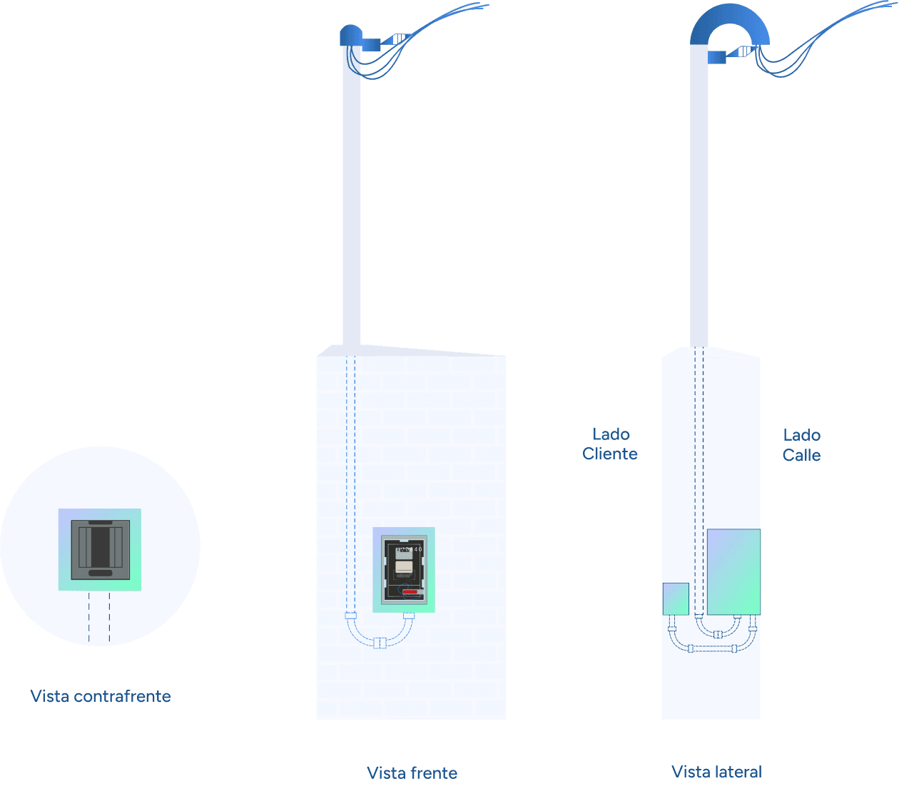 Si en el lugar donde vas a alojar el medidor ya existen otros medidores, se considera agrupado. Por lo tanto, deberás adecuar las instalaciones de acuerdo con alguno de los siguientes esquemas: